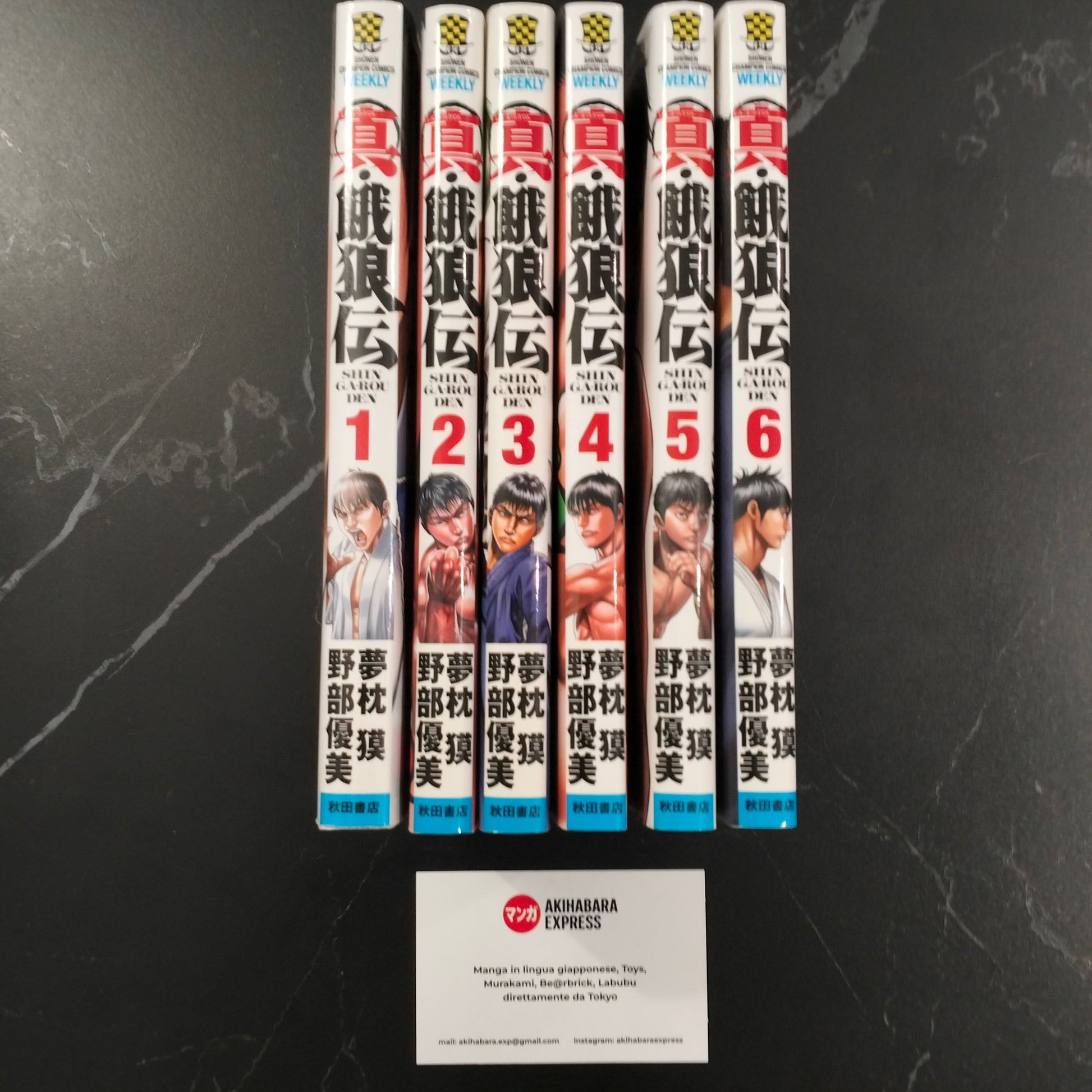 Serie completa in 6 volumi del manga Shin Garouden 真・餓狼伝, scritta da Baku Yumemakura e illustrata da Masami Nobe, prima edizione e prima stampa emessa da Shonen Champion Comics. Serie mai pubblicata in Europa, va a completare il mondo di Garouden insieme a Garouden e Garouden Boy.
