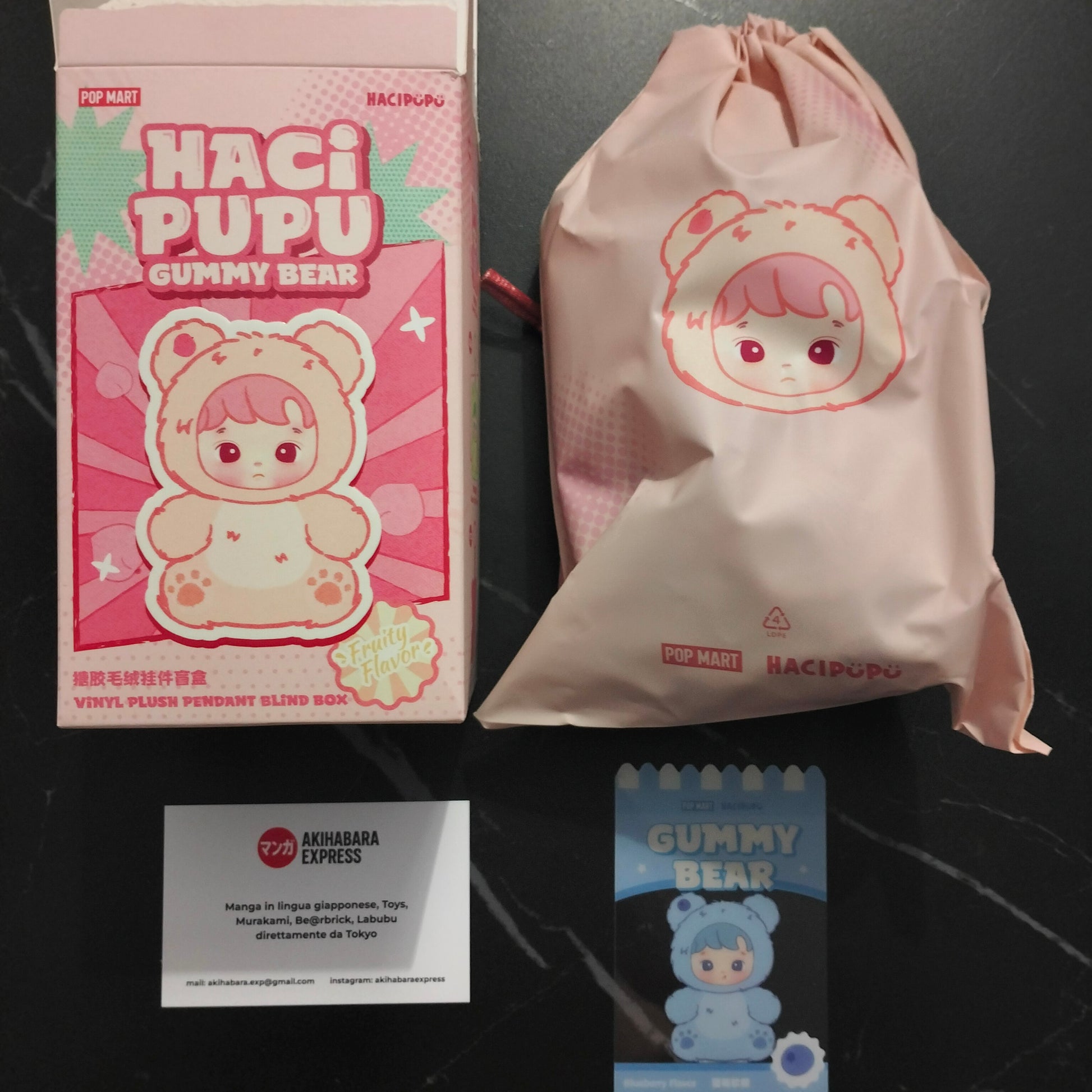 Hacipupu Blueberry Flavor della serie Hacipupu Gummy Bear firmata Pop Mart, acquistato direttamente presso lo store ufficiale Pop Mart di Milano.