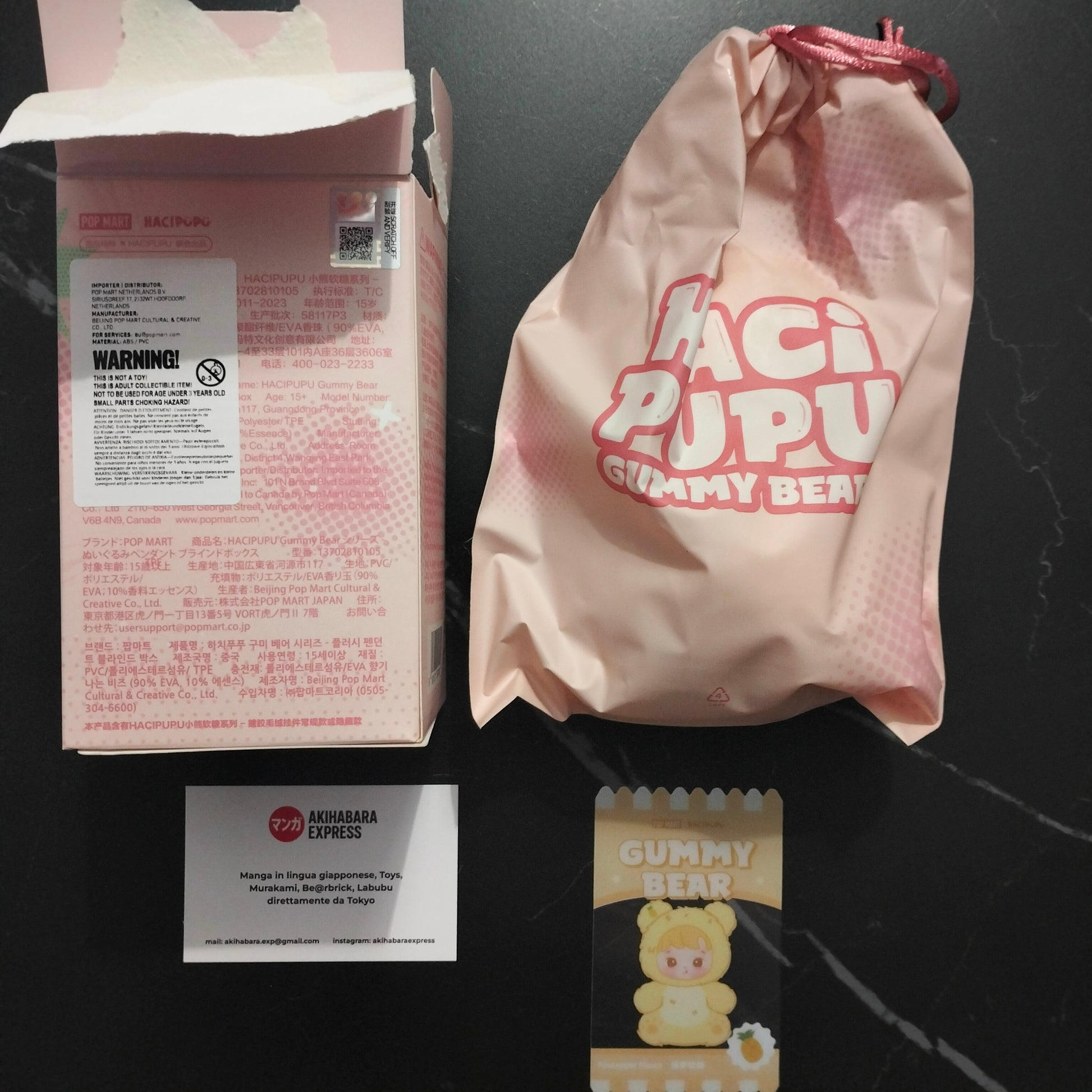 Hacipupu Pineapple Flavor della serie Hacipupu Gummy Bear firmata Pop Mart, acquistato direttamente presso lo store ufficiale Pop Mart di Milano.