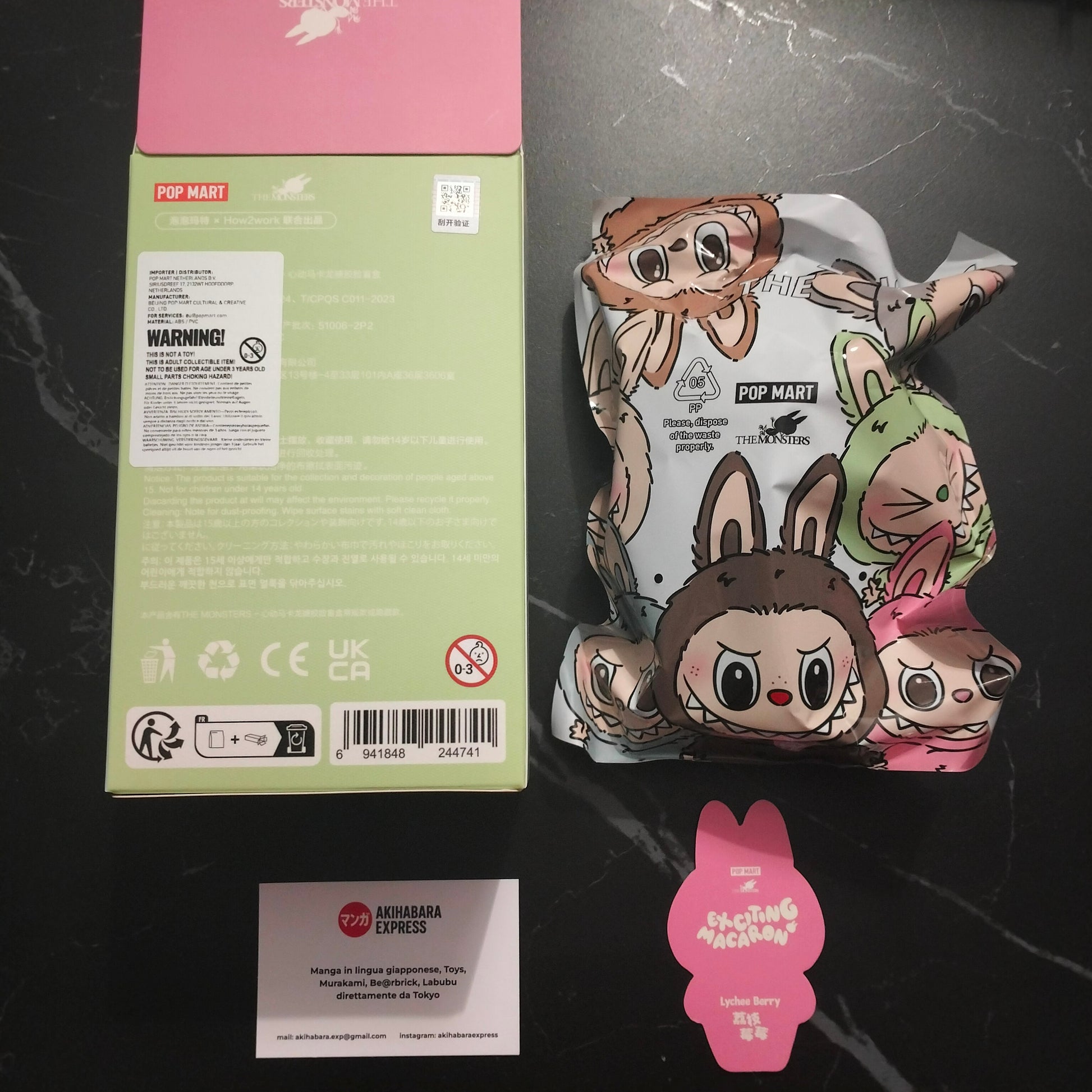 Labubu Lychee Berry della dolcissima serie Exciting Macaron, acquistato presso lo store ufficiale Pop Mart a Milano!
