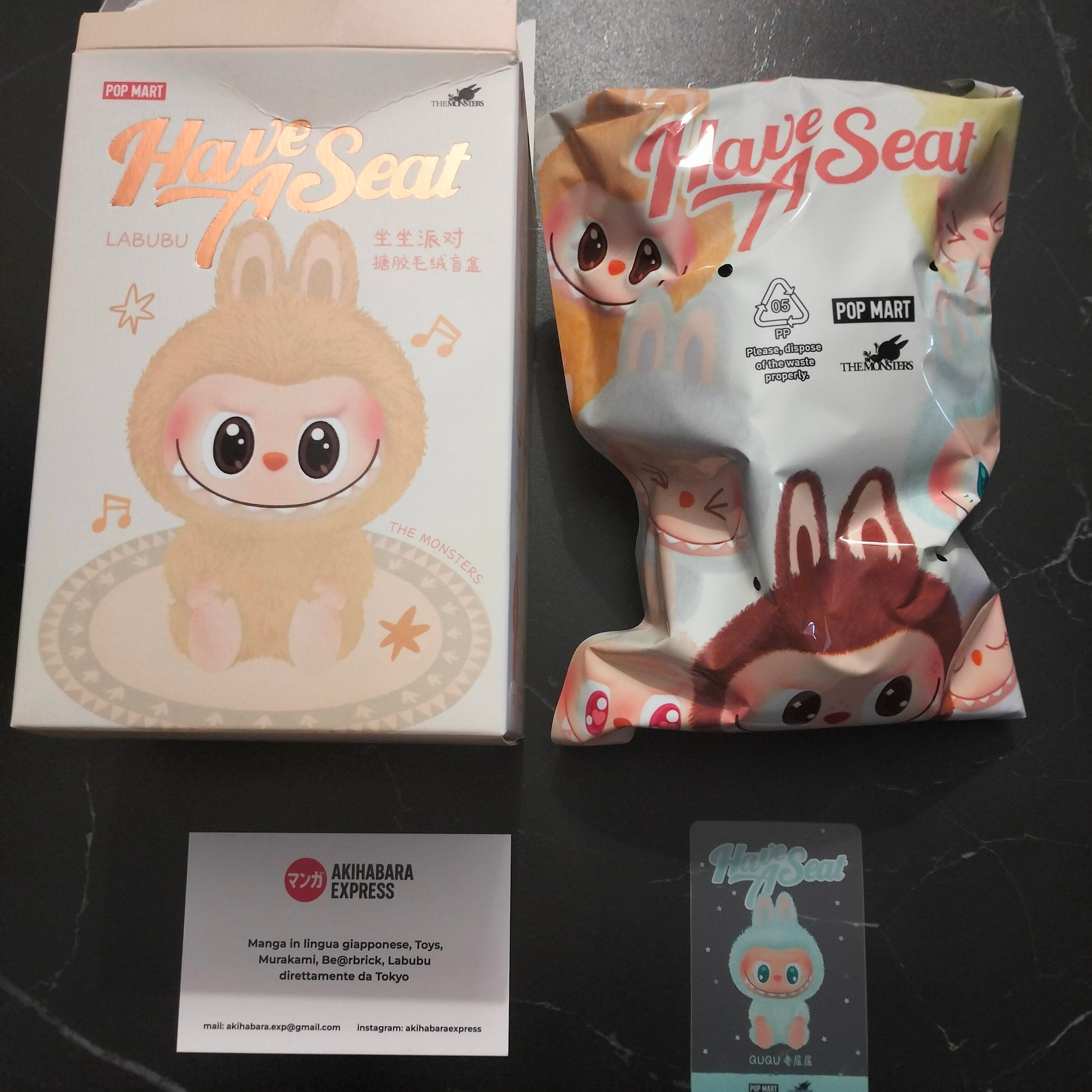 Labubu QuQu dalla serie Have a Seat firmata Pop Mart, acquistato presso lo store ufficiale Pop Mart di Milano.