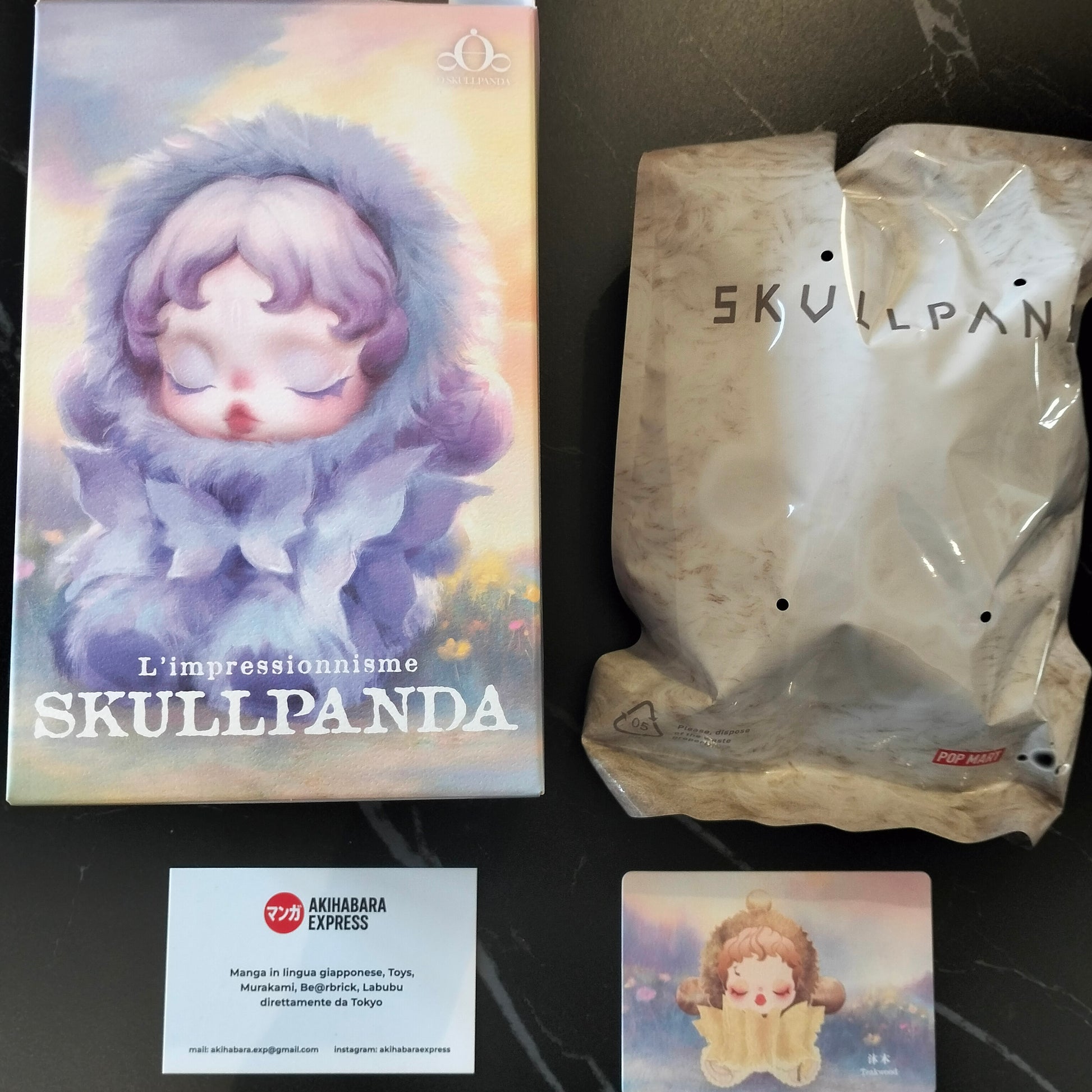 Skullpanda Taekwood dalla serie Skullpanda l'Impressionnisme firmata Pop Mart, acquistata direttamente presso lo store ufficiale Pop Mart di Milano.